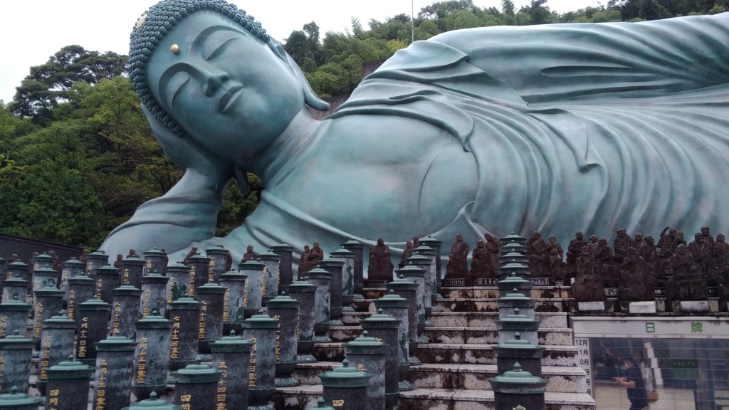 A visit to the Peace Park is an absolute must, it is more intensive than the site in Hiroshima. Once you are there, you are amazed at the size of this monument. The right arm points upwards: The misfortune came from there. The left arm is stretched out as a gesture of peace. The eyes are closed in prayer for the dead. It’s huge. Together with the Atomic Bomb Museum, you should plan half a day to visit this park